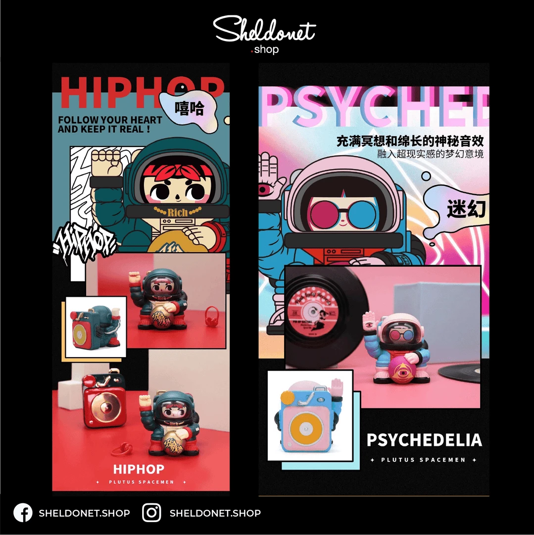The inspiration for Plutus Spacemen comes from the Fortune Cat, Maneki Neko. Plutus means God of Wealth. Combining this with elements from cool astronaut spacesuits, the concept of having wealth from the universe is created. In this latest series, Plutus Spacemen is designed with elements of music!